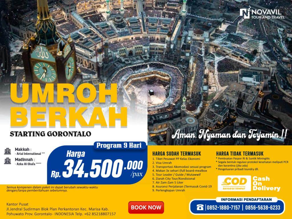 - Perlengkapan : Koper kabin, koper bagasi, tas paspor, kain ihram/mukena, sandal, buku manasik, kain seragam, syal, & sabuk